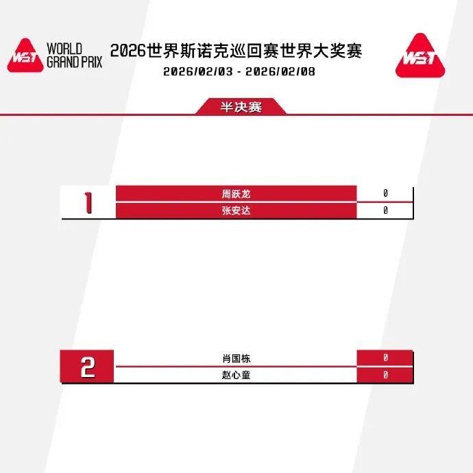 后续两场半决赛对阵,赵心童将对阵肖国栋,周跃龙将对阵张安达。