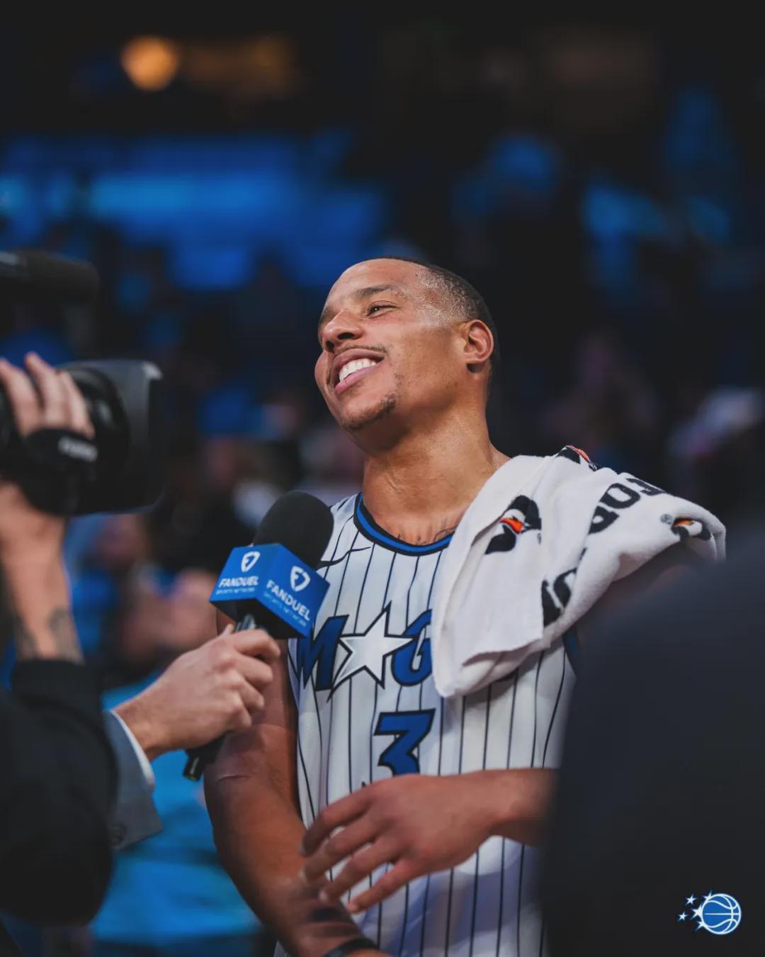 最近10场比赛,魔术后卫贝恩场均能砍下25.9分,投篮命中率59.3%,三分命中率53.7%,罚球命中率84.9%,真实命中率高达75%。过去15场比赛,贝恩的三分命中率领跑全联盟。截至今天赛前,魔术32胜28负暂列东部第七。